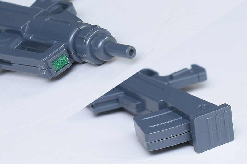 銃口上部のセンサーはグリーンのシールでの色分け。特にマガジンの脱着ギミックなどはありません。