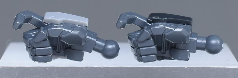 武器持ち手は手首に角度が付いたものとシンプルな通常のものが付属。手首に角度の付いたものは手甲がグレー成形色での再現で、塗装で塗り分けても良いですし、通常の武器持ち手の手甲(ブラック)を組み替えても良いようです。