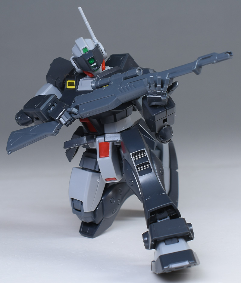 元が結構前のキットなので、合わせ目ができたり色分けが甘いのはご愛用。ポリキャップ重視のキットで可動はスムーズですし、多少のぎこちなさはありますが様になるポーズは十分に再現できます。初心者でも組みやすく遊びやすいですし、決して多くはない狙撃可能機としてコアなファンにもオススメ。その機体性能と共に、全体的に汎用性の高いキットになっているのが良いですね。