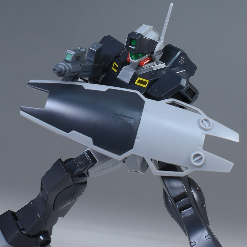 シールド。主に実体弾などに対して有効な防御装備です。ジム・コマンド用に開発された局面シールドの色違いで、耐ビームコーティング処理も施されているとのこと。通常版とも配色は同じです。
