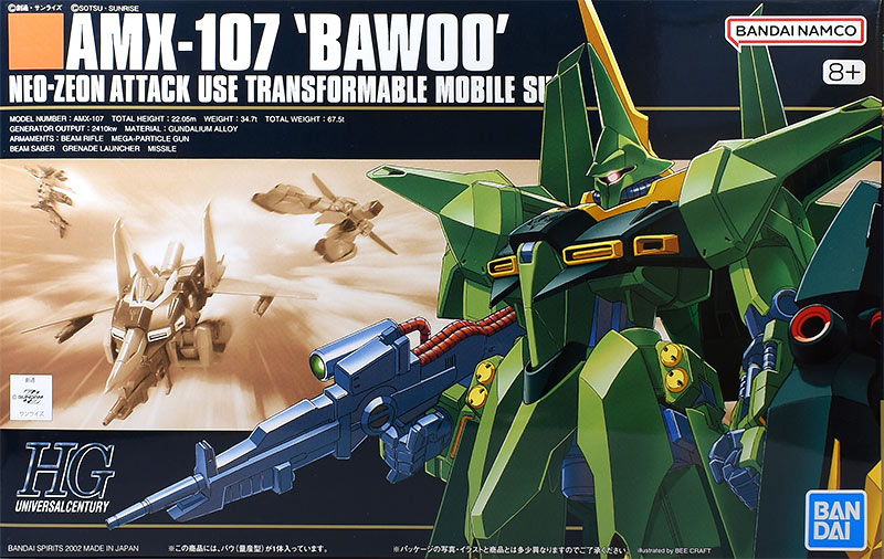 ネオ・ジオン軍が開発したバウの量産仕様可変機で、劇中ではアリアス・モマ、ダナ・キライなどが搭乗。サイコガンダムMk-Ⅱ輸送任務中にアーガマと遭遇し襲撃した他、プル搭乗のガンダムMk-Ⅱを戦闘不能に陥らせるなど活躍を見せた機体「AMX-107 バウ(量産型)」がHGUCでキット化。