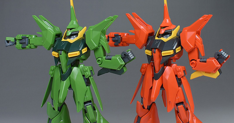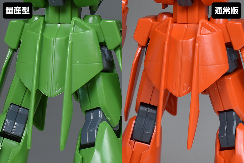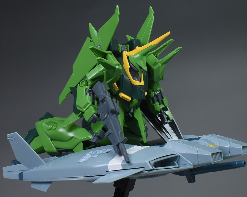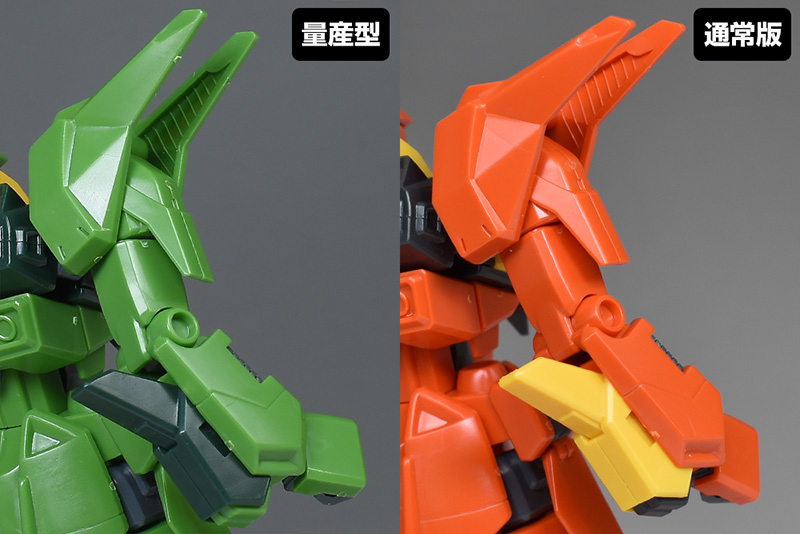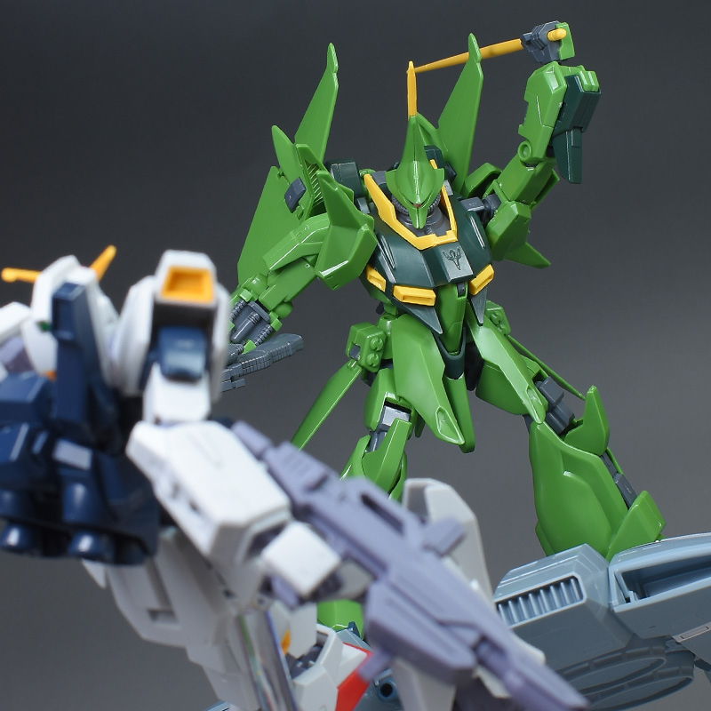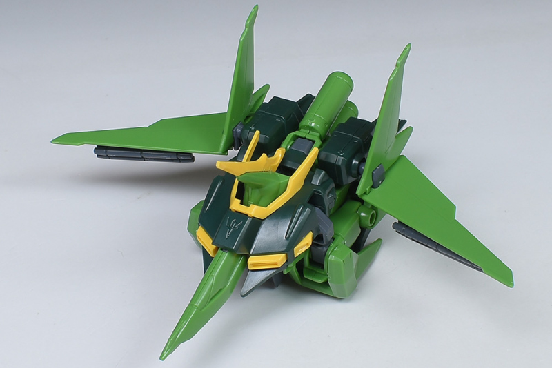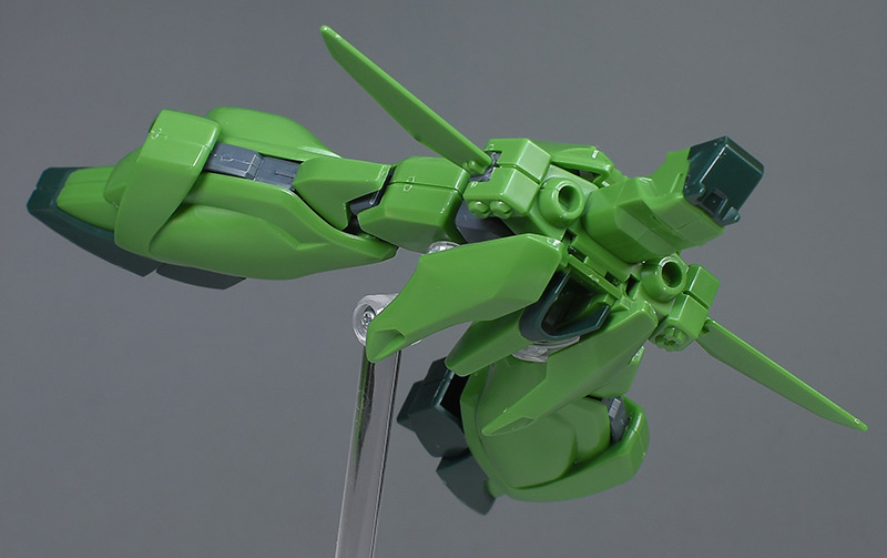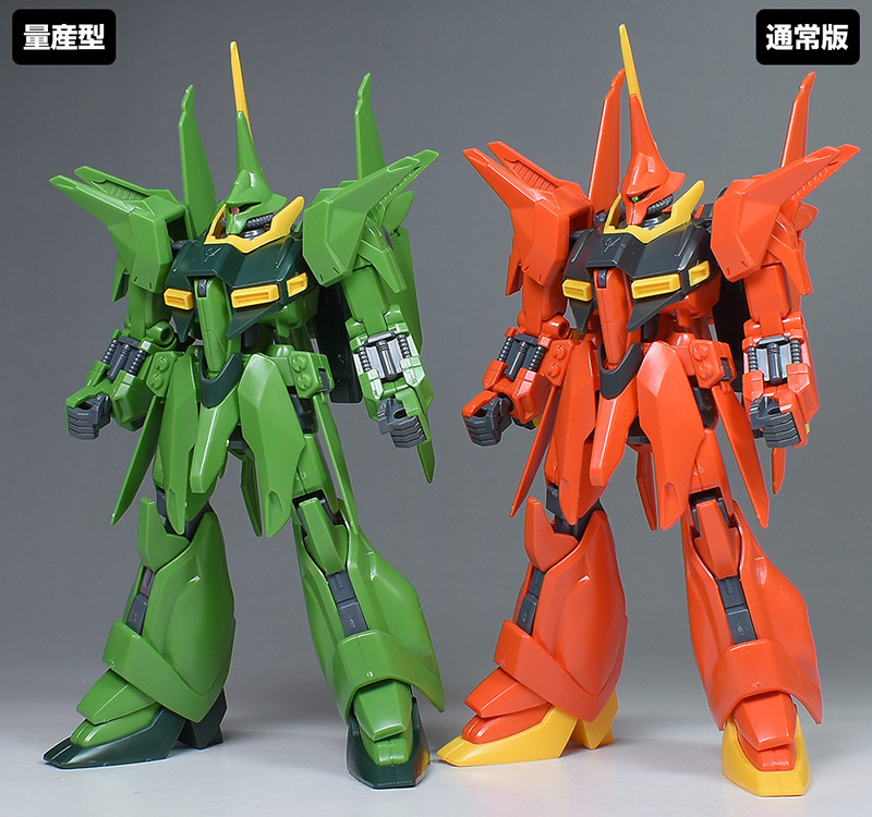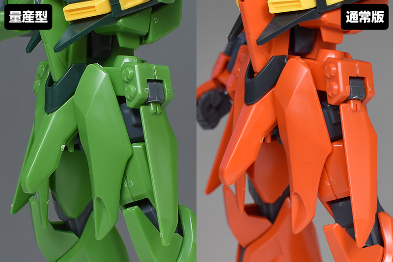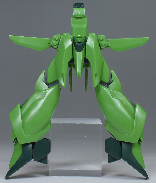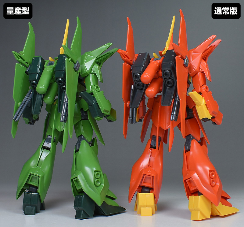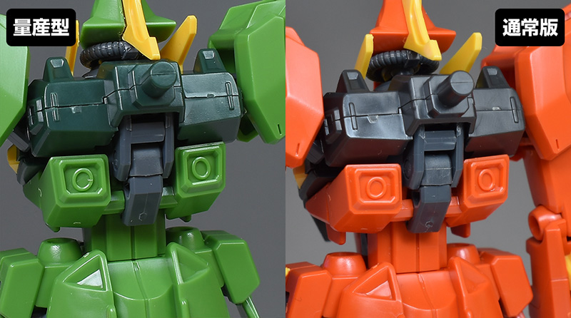 成形色ややや明るめのグリーンを基調に、胴体部やバックパック、ソール部にダークグリーン、頭部や胴体部、ビーム・サーベルなどにイエローを配色。その他、内部や関節、一部外装や武装類などがグレー成形色での再現となっています。