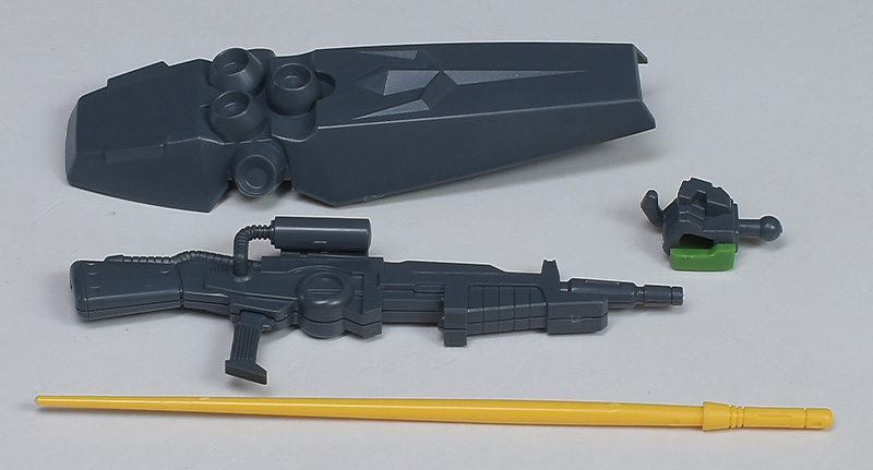 ビーム・ライフル、シールド、ビームサーベル、武器持ち手(右)が付属。