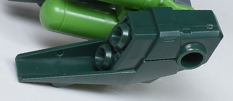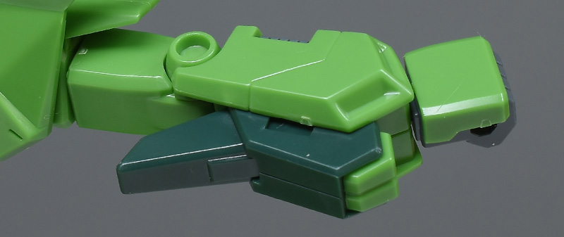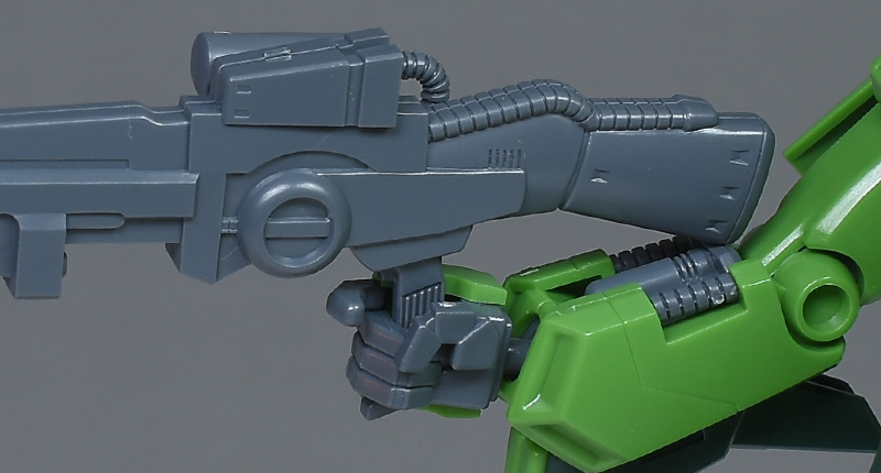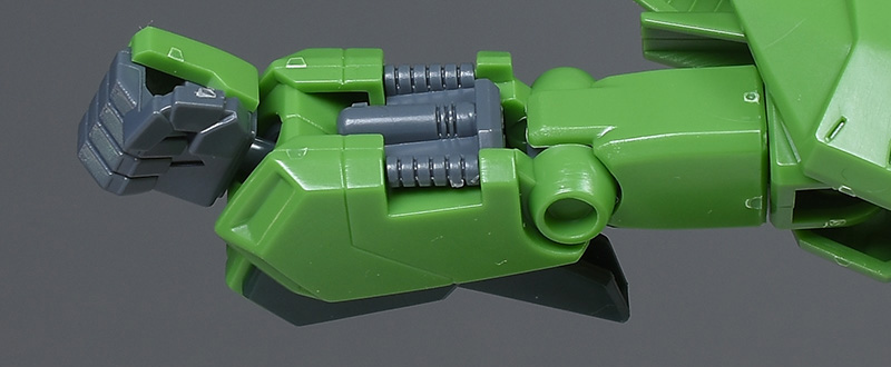 上腕は筒型で合わせ目はなし。前腕は左右の組み合わせですが、手首付近の前後にできる中央の合わせ目は段落ちモールド化されているようです。前腕のダクトはふちをイエロー、内部をグレーに塗り分けが必要。グレネード・ランチャーの射出やハッチ展開ギミックなどはありません。