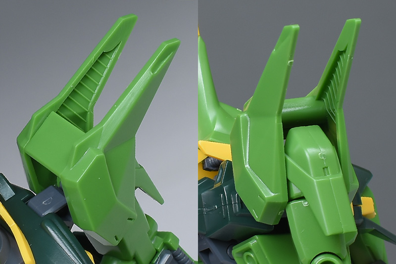 ショルダーアーマーは前後の組み合わせですが、合わせ目は端でモールド化されています。尖った装甲裏もスリットモールドがきっちりと造形されていてチープさを感じさせない造りになっています。内側はグレーに塗り分けると更に雰囲気が良くなりそうですね。