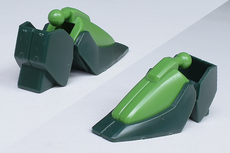 ソール部は3個パーツという少ないパーツ構成であっさりとした造り。ですがややボリューム感があり、バウの脚部の重厚感を表現する役割を担っています。