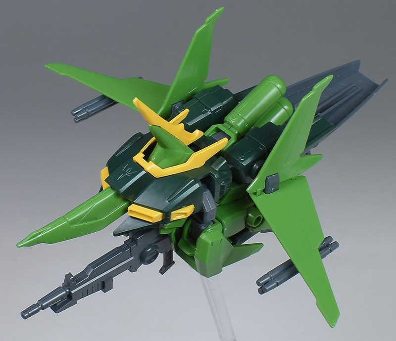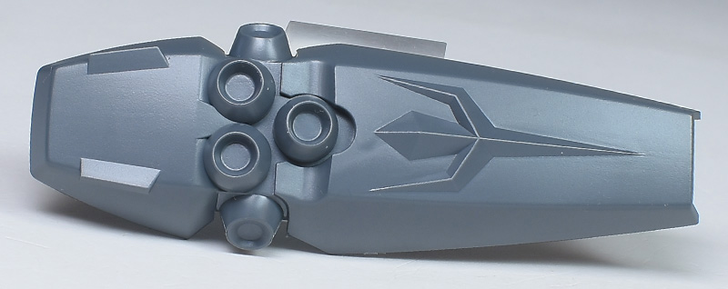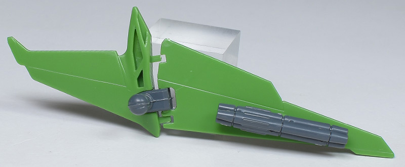 バウ・アタッカーを上下から。機首や左右ウイングなど、戦闘機らしいシャープなシルエットで造形。各部ともロック機構はないですが、特別複雑な構造でもないため、形状が崩れるようなことは少ないです。