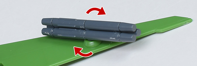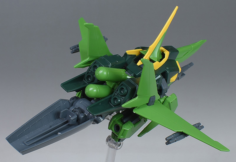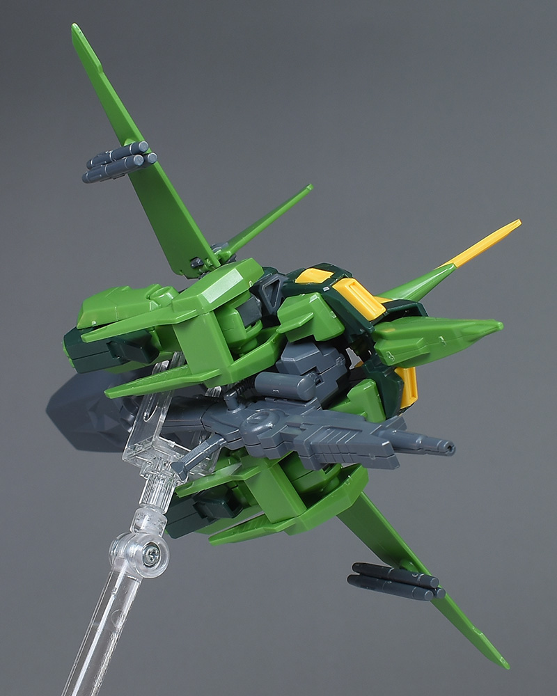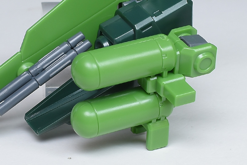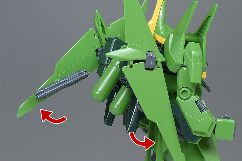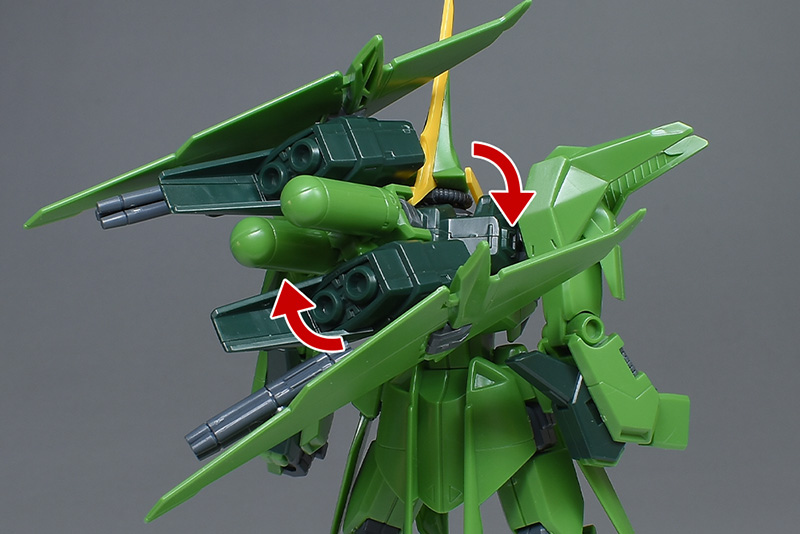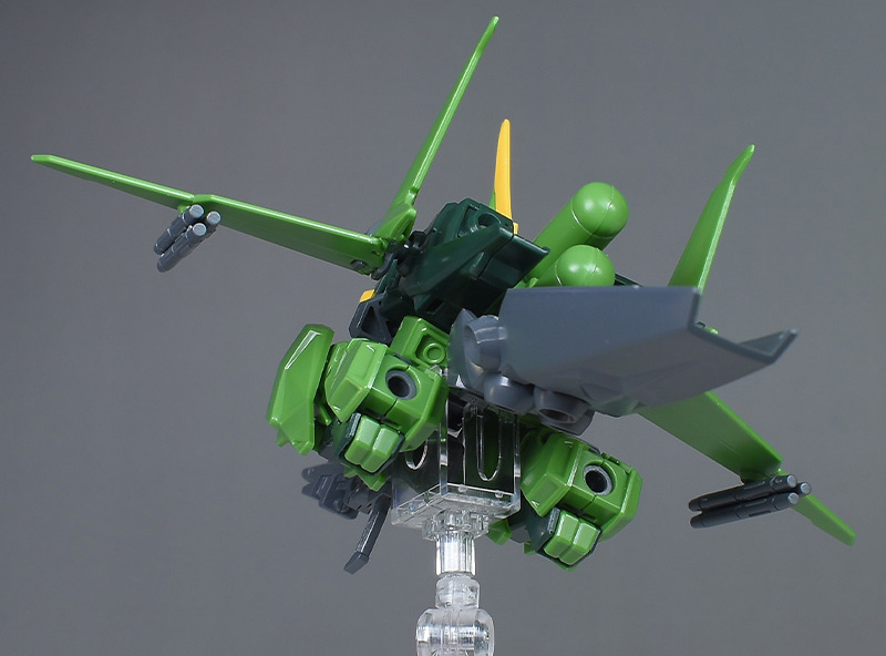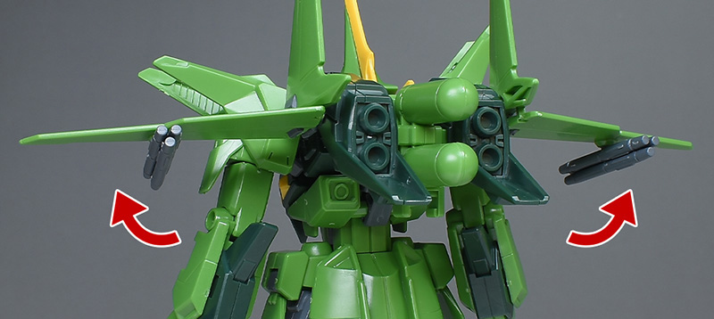 フレキシブルウイングバインダーのパイロンには3基のミサイルが造形。1軸接続でロールが可能です。1基は別パーツ化されているので塗り分けたりしてみても面白そうですね。