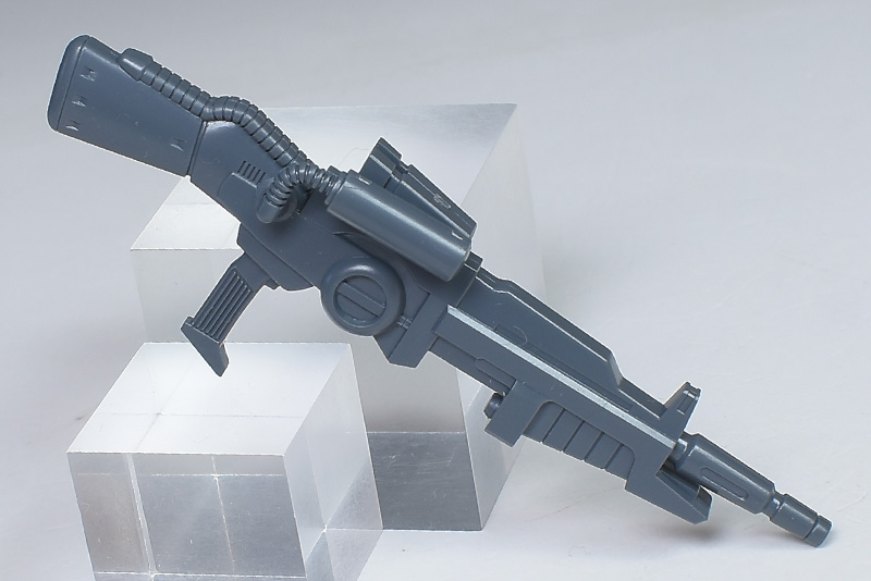 ビームライフル。専用に開発された携行式のビーム砲です。変形時の空力特性や取り回しを機体特性に併せて設計されているとのこと。
