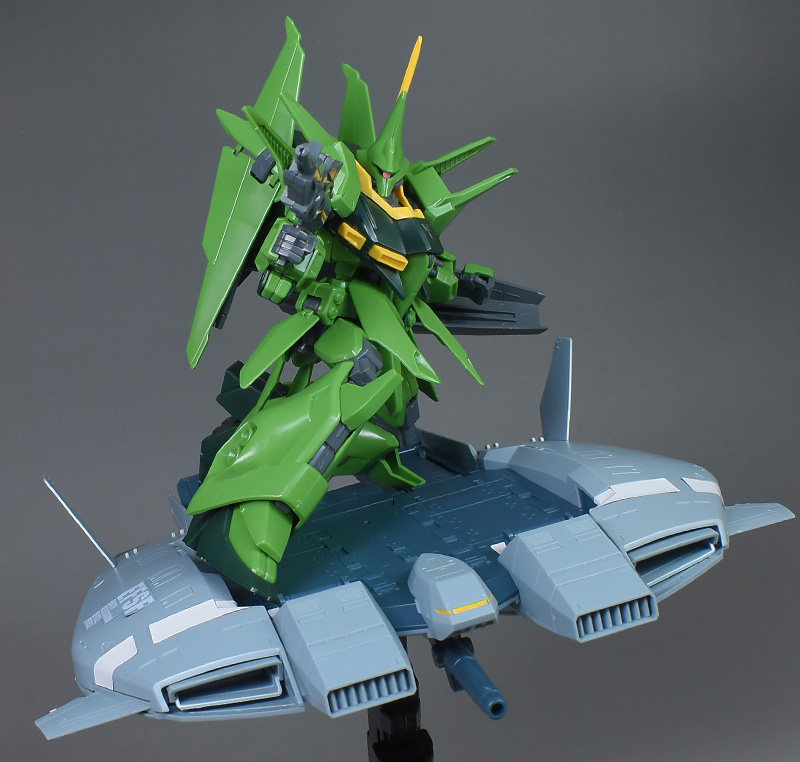 劇中では常に大気圏内戦闘でベースジャバーを使っていたので、バウ量産型を楽しむにはベースジャバーは必須かと。傾けるとキットが落下しやすいので注意です。