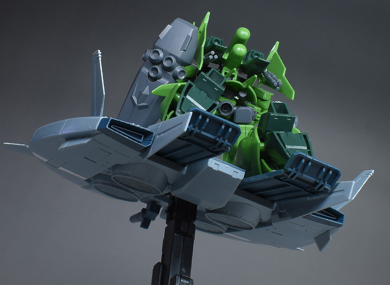 手元にZ版のベースジャバーがないのでUC版でディスプレイ。ジョイントパーツで固定することができないため、ベースジャバーへは軽く乗せているだけです。甲板が広いので、上手くバランスを調整すれば立膝をついた状態での搭乗が可能でした。
