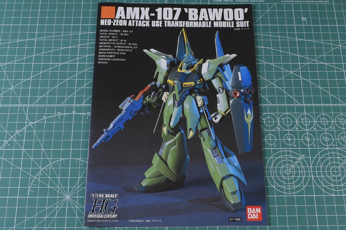 パッケージサイズは一般的なHGとほぼ同じ大きさ。通常の赤いバウとも内容物が同じなので同じ大きさです。そこまで全高のあるキットではないですが、背部やウイングバインダーなどにボリュームがあり、変形機構で構造が少し複雑なのでこのくらいが丁度良い・・?