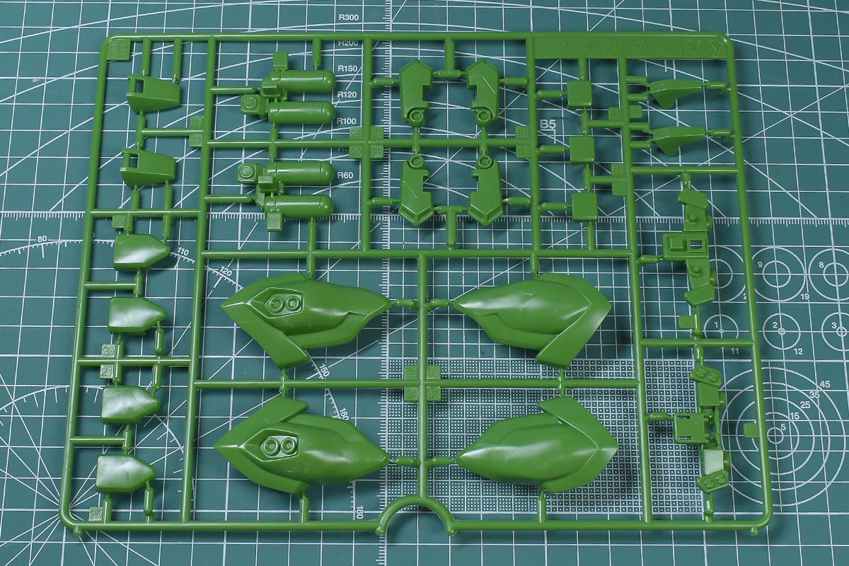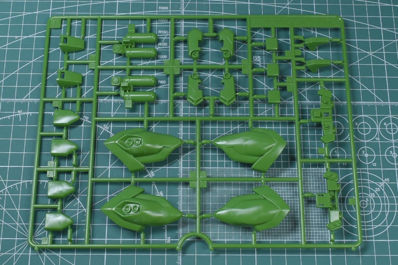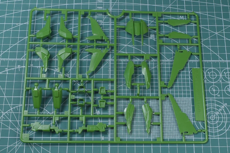 ↑B1ランナー。グリーン成型色で、胴体部や腕部、脚部、背部バインダーパーツなど。
