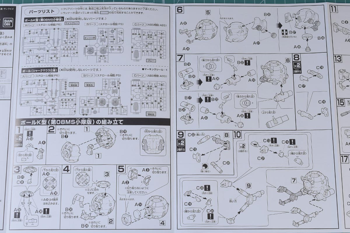 以上、説明書でした。構造自体はボールツインセットと大差ありません。K型は前面ハッチ周りにヘッドライトなどの装飾がついているくらい。組み立てもサクッと組めるボールが2体付属していてそこそこボリュームがありますし、構造もしっかりと把握できます。(これってメリット・・・?;)