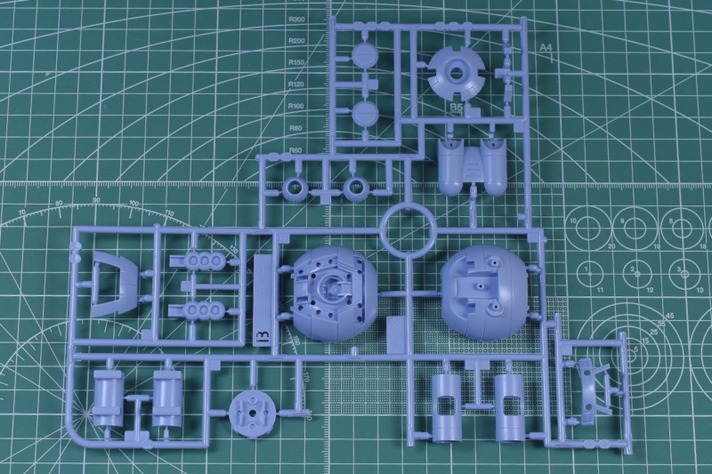 ↑Bランナー。ライトブルー成形色で、コントロールブロックや背部スラスター、アーム基部パーツなど。HGUCボールツインセットからの流用ですが、左上と中央下の通常版用パーツが省かれ、左下と右側にシャークマウス仕様用のパーツが追加されています。