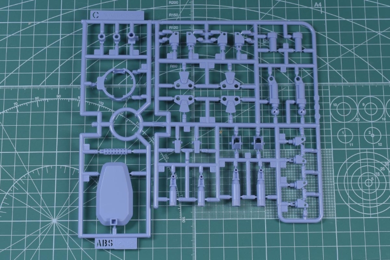 ↑Cランナー。ライトブルー成型色で、アームや各部内部パーツ、専用台座パーツなど。ABS素材です。HGUCボールツインセットからの流用ですが、左側の通常版用腕部パーツが省かれ、右側にK型用の腕部パーツが追加されています。K型と同形状。