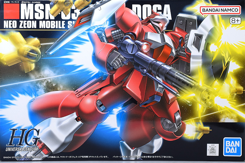 ネオ・ジオンがギラ・ドーガをベースに開発したニュータイプ専用重MSで、劇中ではクェス・エア(クェス・パラヤ)が搭乗。ルナツー奇襲作戦にて、サラミス改級撃沈や父アデナウアー搭乗のクラップ級のブリッジ破壊など印象的なシーンを見せた機体「MSN-03 ヤクト・ドーガ(クェス・エア専用機)」がHGUCでキット化。
