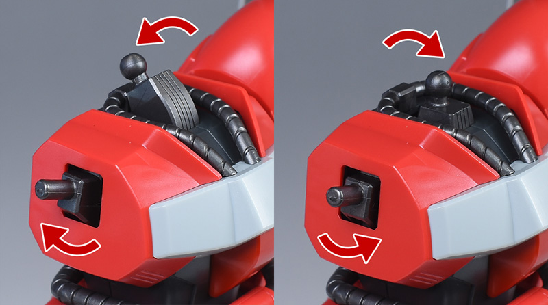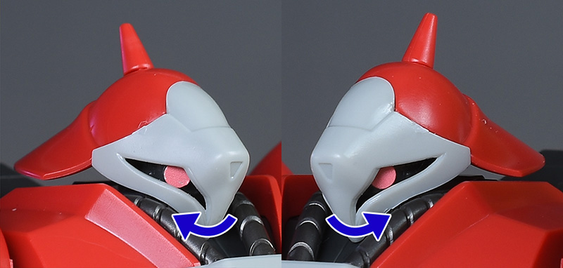 首はABSパーツ構成で上方に幅広く展開可能。肩はポリキャップとABSパーツ構成で適度に前後、上下します。