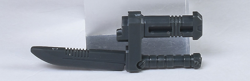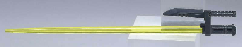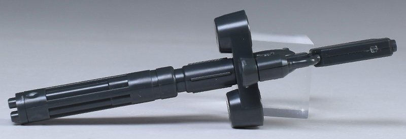 ヒート・ナイフ付ビーム・サーベルは通常の握り手でグリップを握らせます。ダボ固定ではないため、若干ふらつきますが、抜け落ちることはないので特に不自由さやストレスは感じません。若干手首の強度が弱いのが気になるかなという程度。