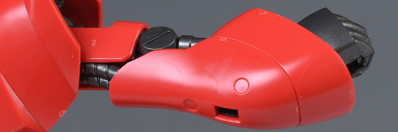 ソール部は尖ったつま先が特徴的に造形。エッジの効いた装甲で、他の箇所と同様、重厚さが感じられる造りになっています。足首の装甲は左右の組み合わせで中央に合わせ目ができます。適度に可動し、ソール部の表情付けが可能。