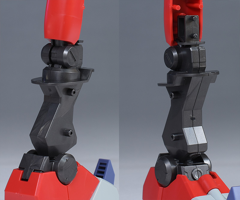 脚部は一部のみ内部フレームが造形されていますが、外装のシルエットとは異なり、膝関節以外が外部に露出することはありません。