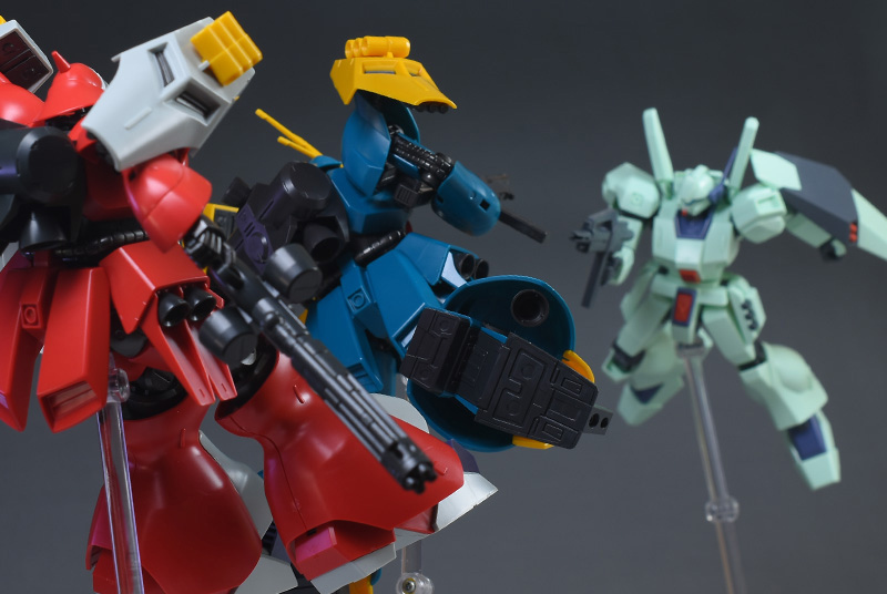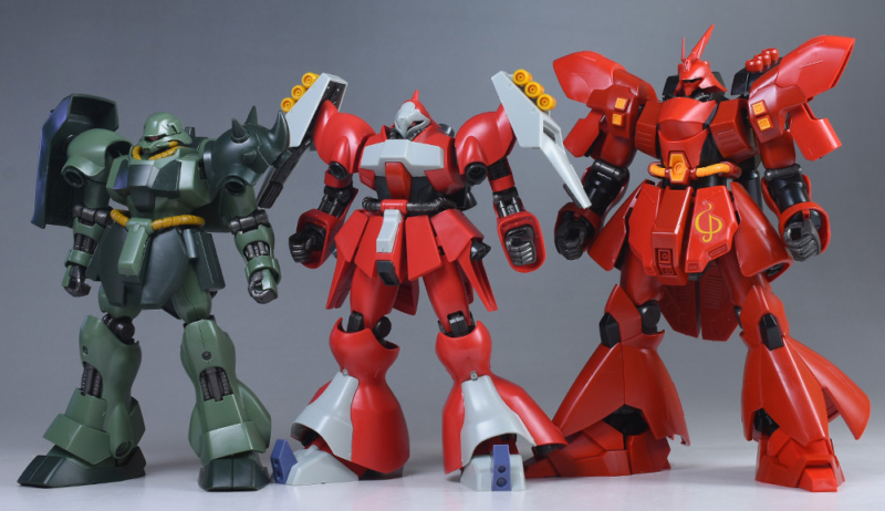 同作品登場機であるHGUC ギラ・ドーガHGUC サザビーと並べて。どれも発売日にさほど差がないこともあり、造形、プロポーション的に組み合わせても違和感はなさそうですね。