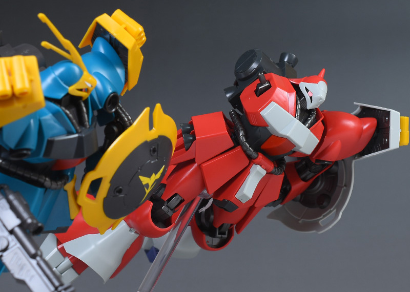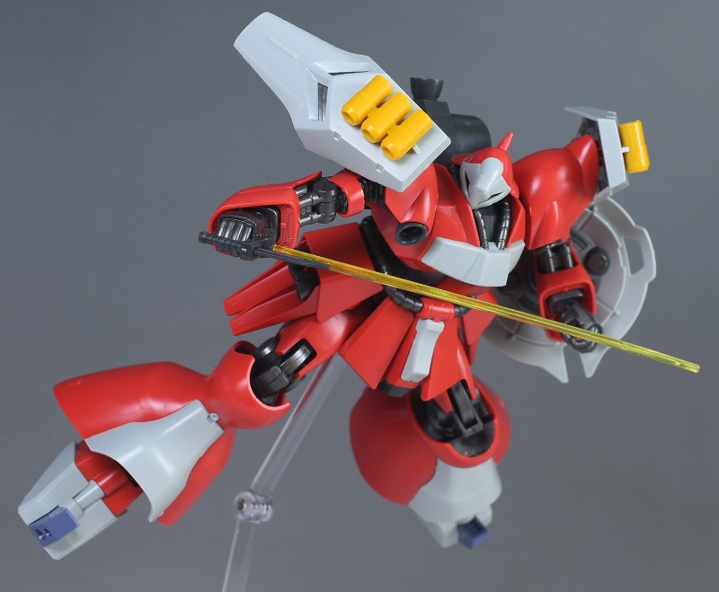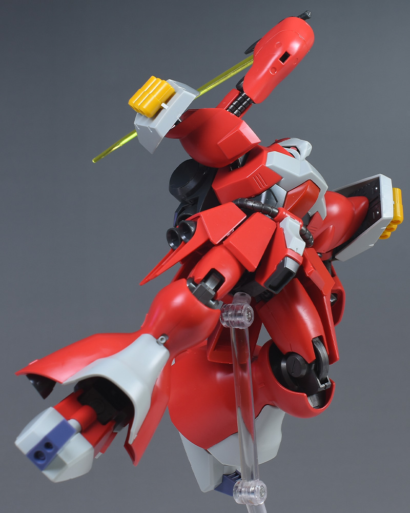 肩のバインダーの向きを自由に変えられるので、羽根モノ機体のような幅のあるポーズも再現可能。造形美が感じられる機体デザインもポーズの格好良さに一役買っています。