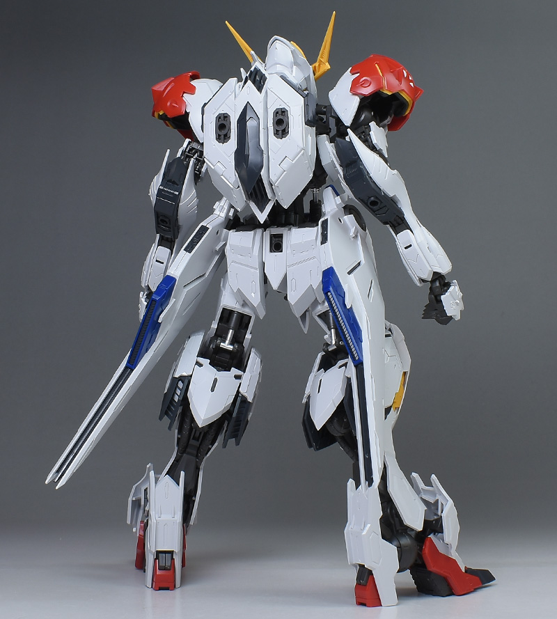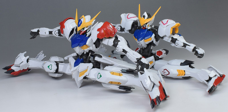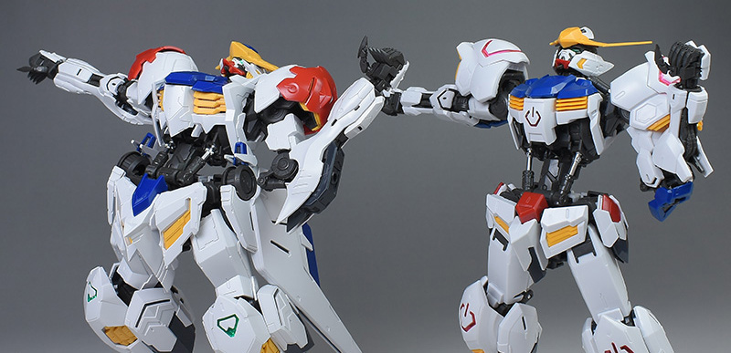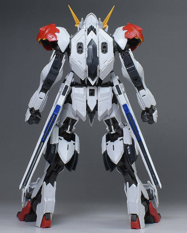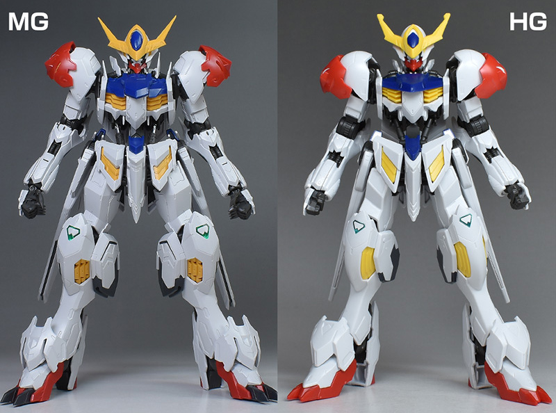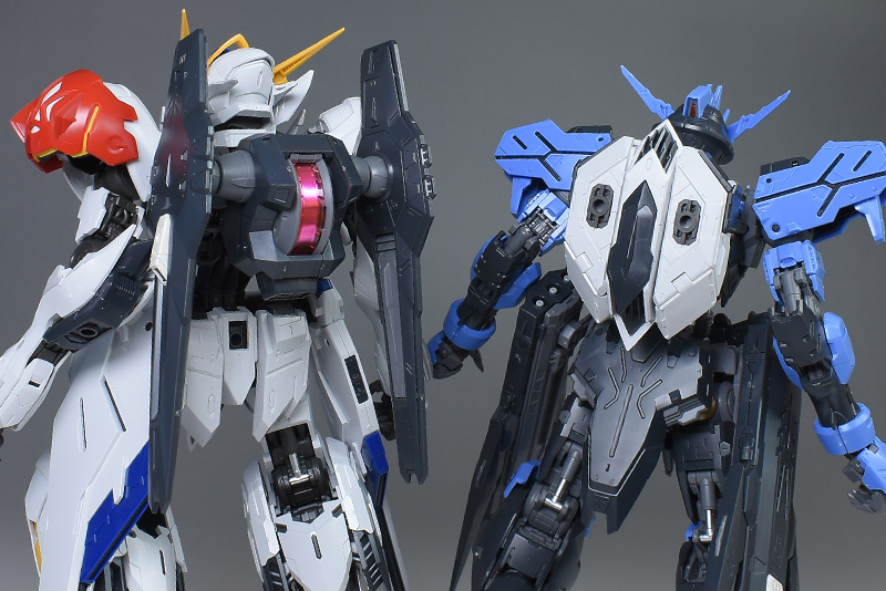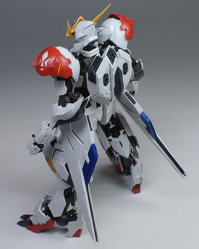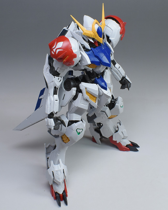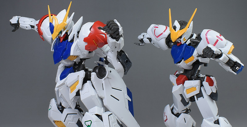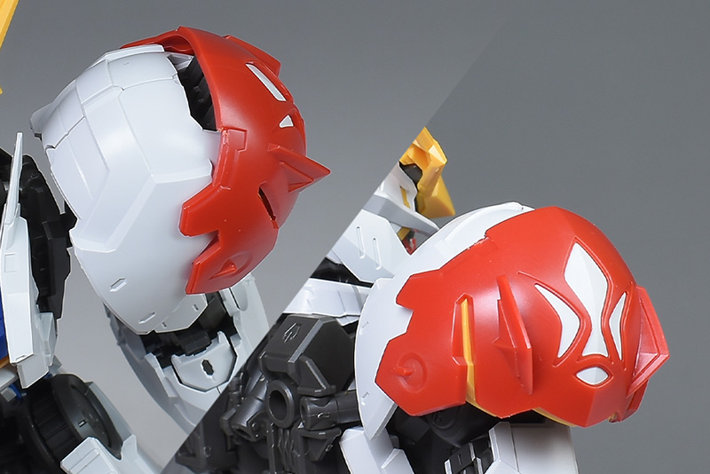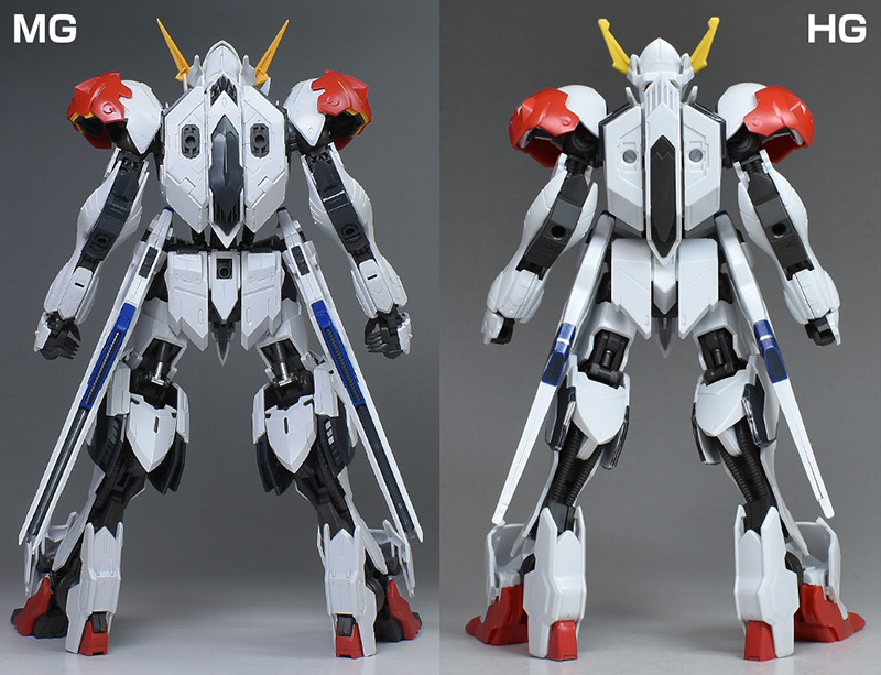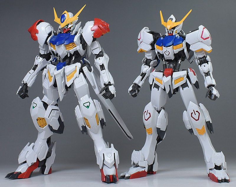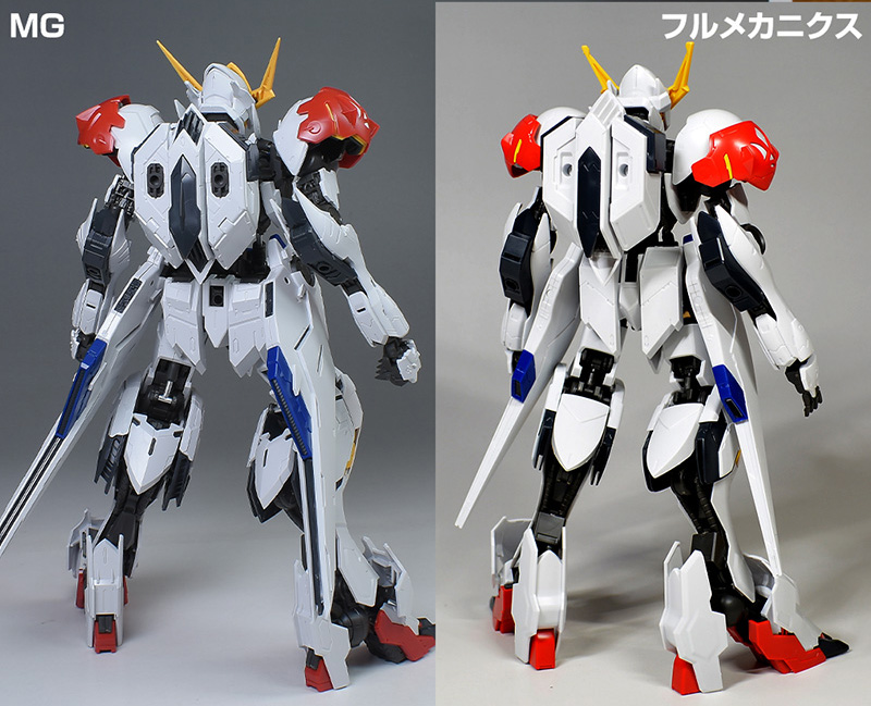 続いて内部フレームに外装パーツを組み付けた状態を、MGガンダムバルバトス(以下、バルバトス)と比較しながら各部を見ていきます。
