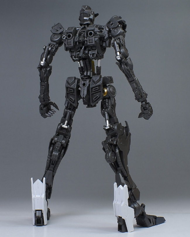 内部にはメカニカルなガンダム・フレームが造形。MGガンダムバルバトスとMGガンダムヴィダールの内部パーツを流用しつつ、頭部、胴体や前腕の一部、ソール部が新規パーツで再現されています。細かいパーツが多いので組み立て時の紛失には少し注意が必要。