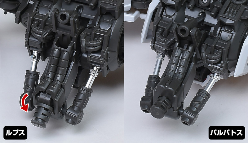 腰部の一部パーツもルプス用に新造。可動ギミックが追加されています。