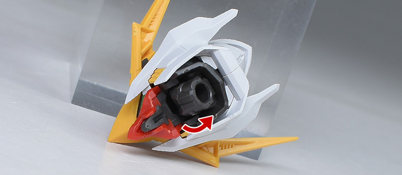 左右の白い下部装甲や中央のスラスターも跳ね上げることができ、表情を変化させることができます。