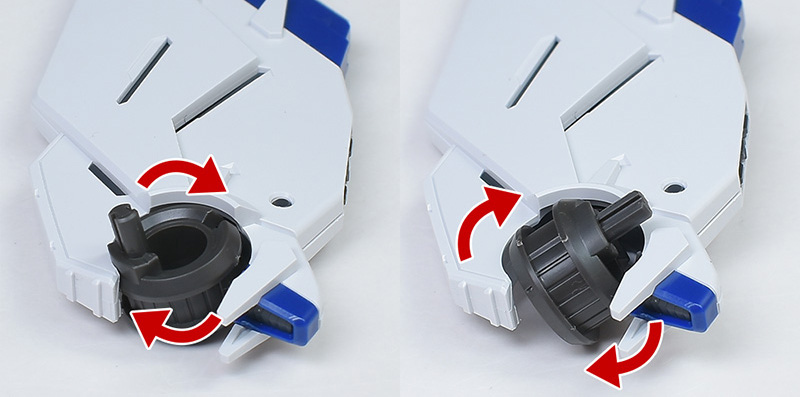スラスターはロールや左右、前後など幅広く可動。ポーズに合わせて干渉が避けられますし、スラスターとしての動きをつけることができます。