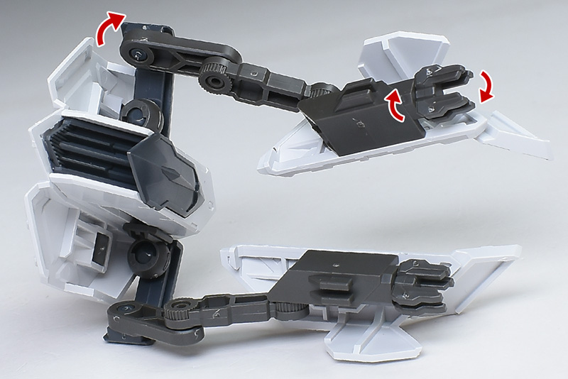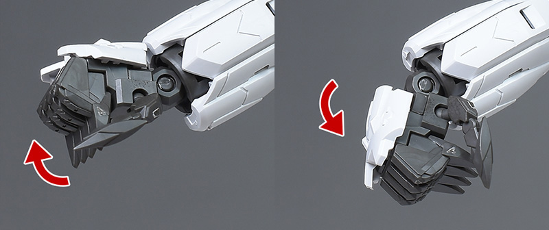 一部もボールジョイント接続で左右など適度に可動します。アーム自体も各部可動ギミックによって柔軟に可動。程よい強度もあって取り扱いやすいですね。クローの部分もロール可能。