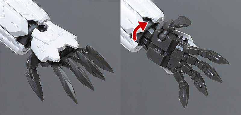 平手用の指パーツに組み替えて。第1関節部分がよりシャープで鋭い爪に進化。爪は白く塗り分けが必要です。