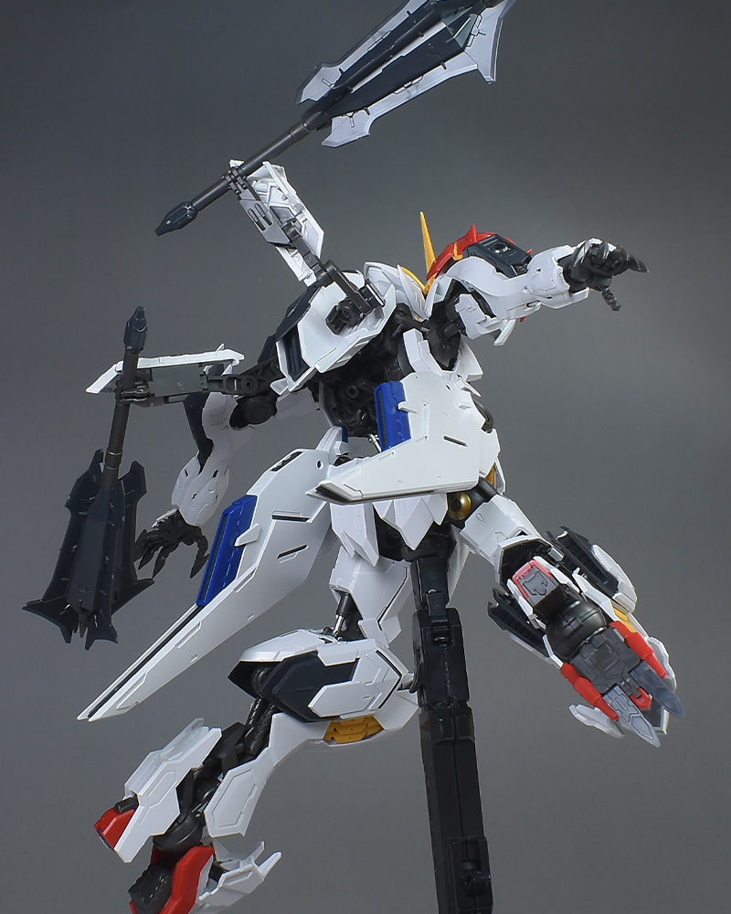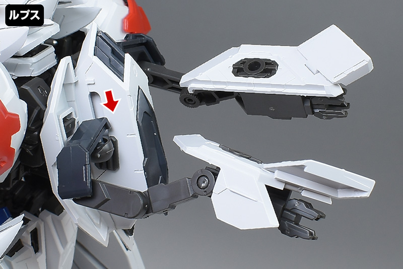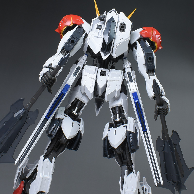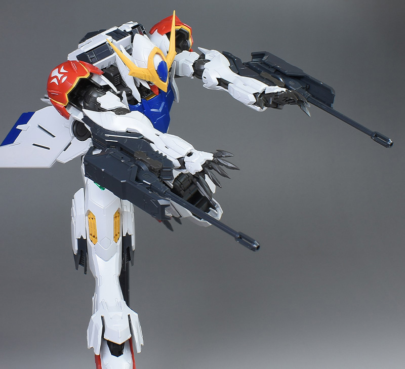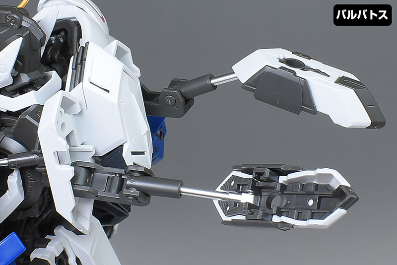 MGガンダムバルバトス(2019年12月発売)とMGガンダムヴィダール(2025年3月発売)のガンダム・フレームパーツを流用しつつ、バルバトスルプスに合わせたフレーム形状、接近戦を主体とする特徴的(マッシブ)な機体外装や武装類が新規造形で再現されています。
