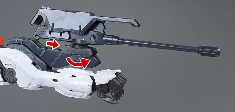 腕部200mm砲は1ダボを前腕に組み付けるだけで装備可能。