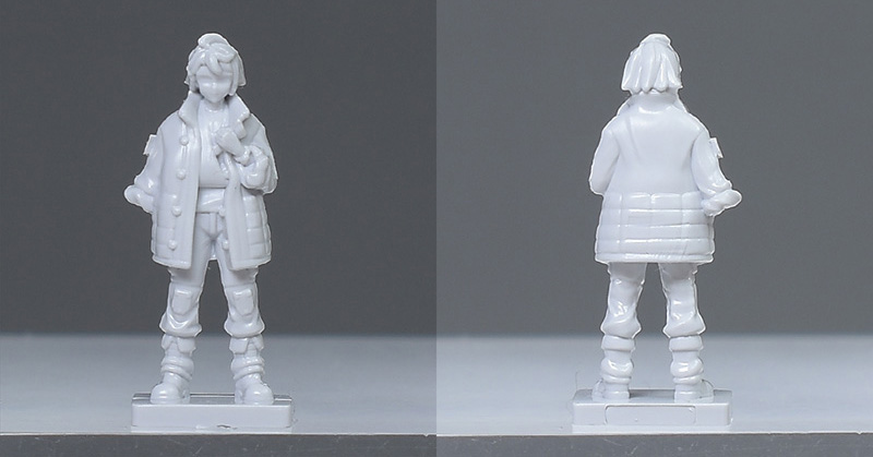 ポリキャップも不使用。肘や膝など関節各部はKPSパーツ構成で関節強度はまずまず高めです。背部バックパックはコンパクトで負荷はかからず、ソールがハイヒール状で多少バランス調整が難しめですが、うまく調整すれば問題なく自立が可能です。