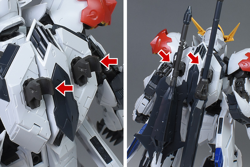 付属のジョイントパーツを使用することで、ソードメイス、ツインメイスともにバックパックにマウント可能。