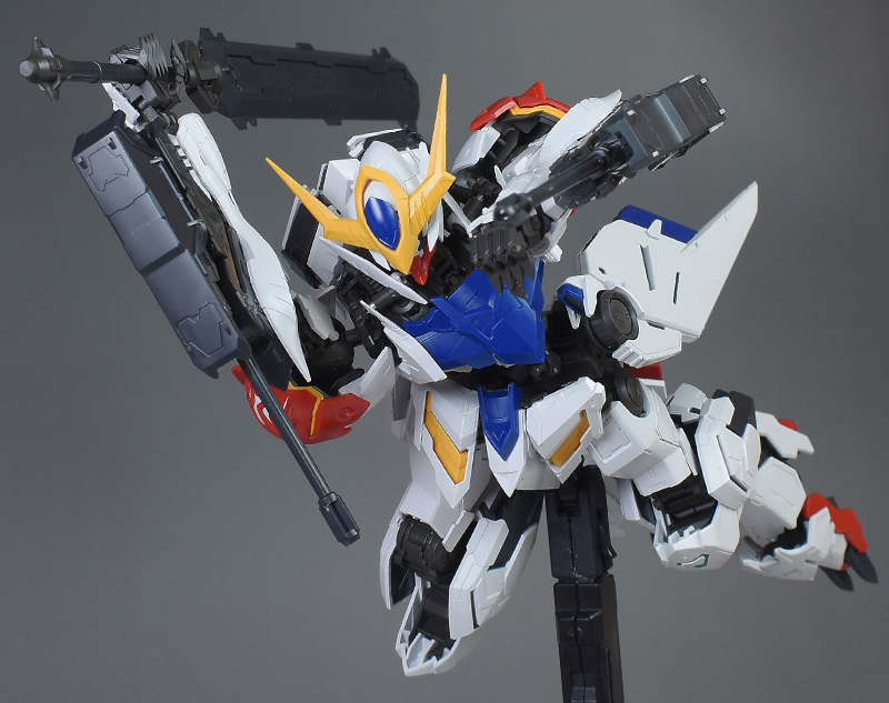 プロポーションバランスもよく、HGでは別売りだったツインメイスもきっちりと付属しています。欲を言えばヴァルキュリアバスターソードや大型レールガンも欲しかったですが、ルプス用の拡張パーツセットも発売され、バスターソードはそちらに付属するようです。眼光エフェクトを含め覚醒状態が再現できそうで楽しみですが、まずは前段階として、MG化された完成度の高いルプスをとことん楽しみ尽くしたいですね。