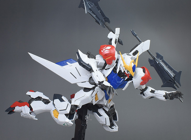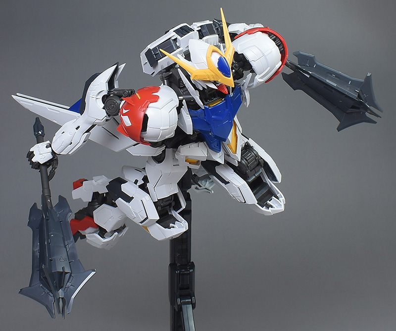 各部とも幅広く可動しますし、肩部や腰部などはバルバトス以上に幅広く可動します。なので外装に厚みがありますが干渉も避けられますし、躍動感あるポーズも十分に再現できそうです。