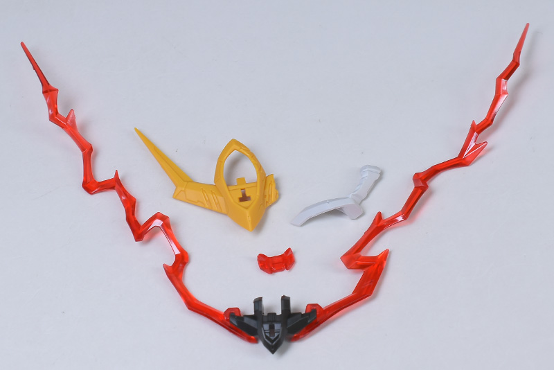 まずは破損頭部再現パーツと眼光エフェクト再現パーツから。付属するのはアンテナパーツと白襟パーツ、ツインアイパーツ、眼光エフェクトパーツです。