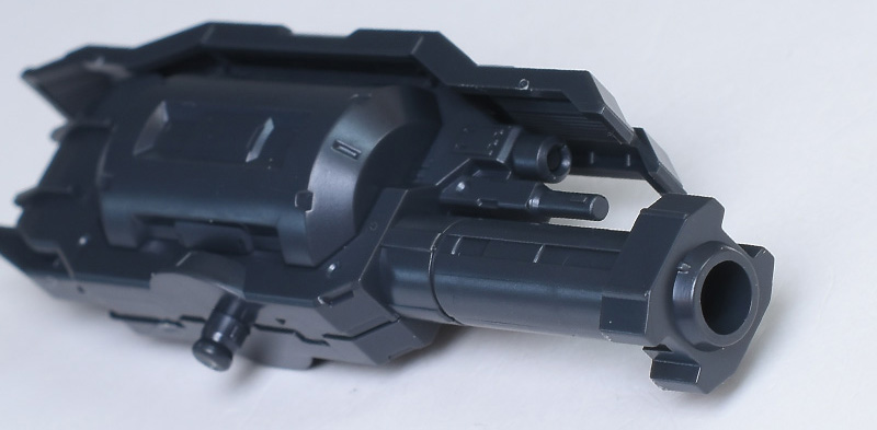腕部ロケット砲。両腕部に装備可能な近中距離用射撃武装です。大型の弾頭を使用するため、200mm砲に比べて連射性は低下するが威力は高いとのこと。4個パーツ構成の簡単な造りですが、表面にはメカニカルなモールドがデザインされています。
