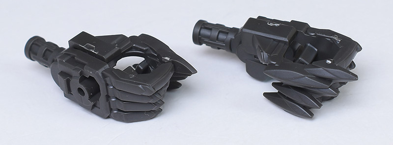 グリップ部分は前後に伸縮可能。グリップには溝が造形されており、付属のハンドパーツのダボを組み付けることでしっかりと保持できるようになっています。グリップはロールするので、ジョイント穴の向きをかえることもできます。