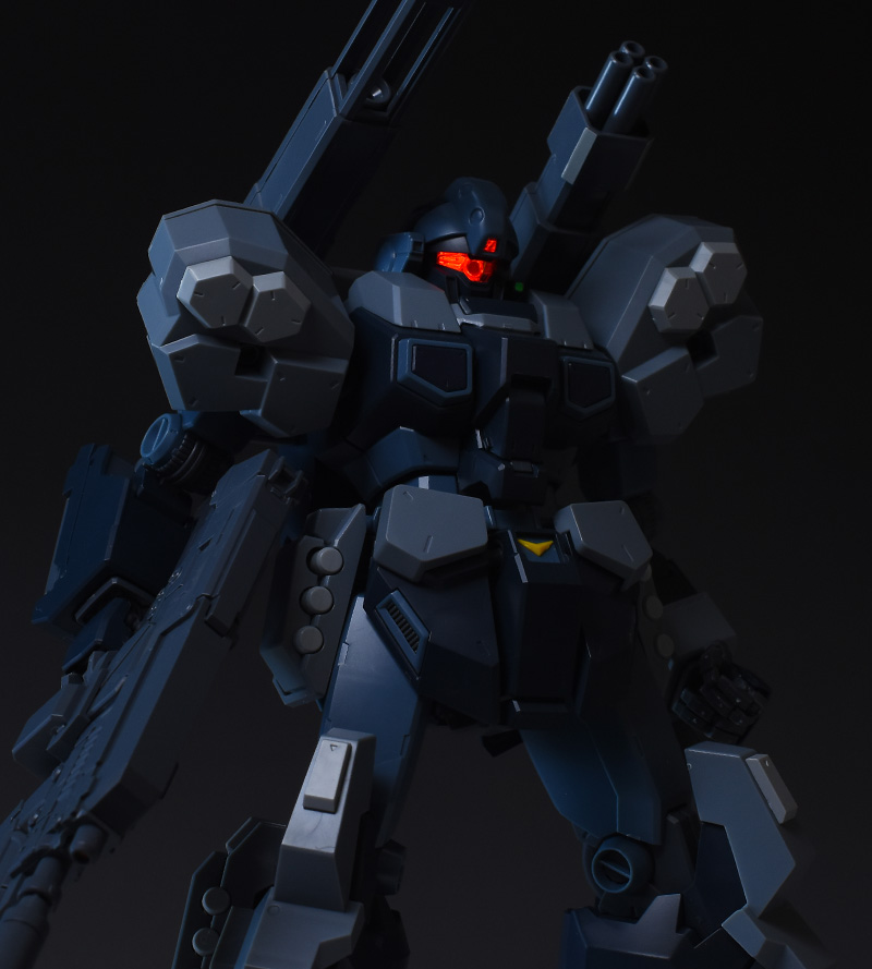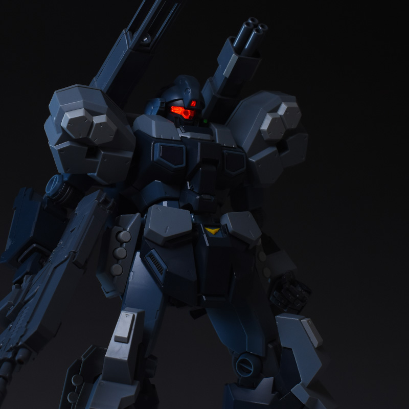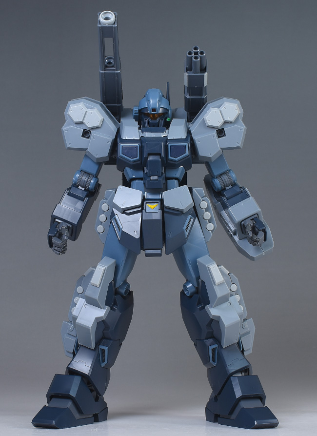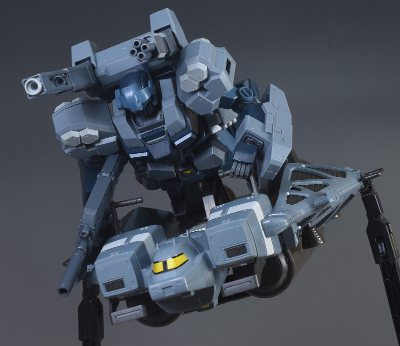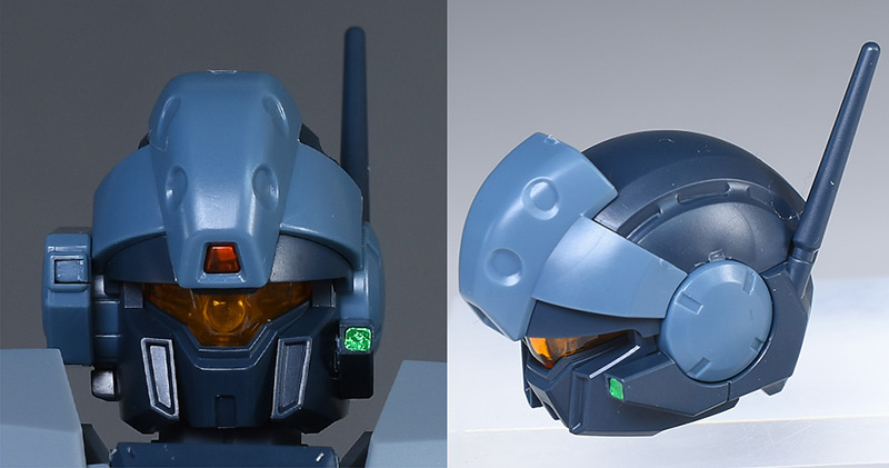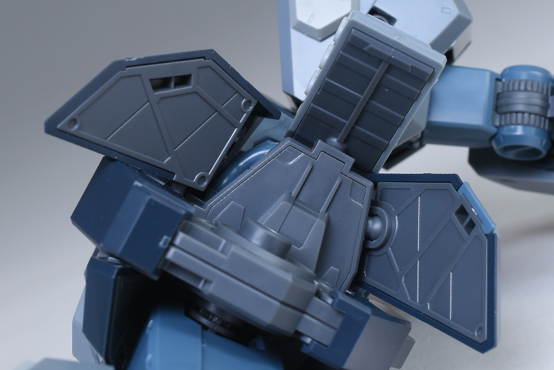 頭部はジェスタと同じ。ジェガン系発展機らしいバイザータイプで、額には特徴的なヘッドギアを装備。各部がミリタリー調のデザインで造形されています。左右にバルカン・ポッド・システムを装備するなど、特殊部隊仕様の雰囲気が感じられて格好良いですね。