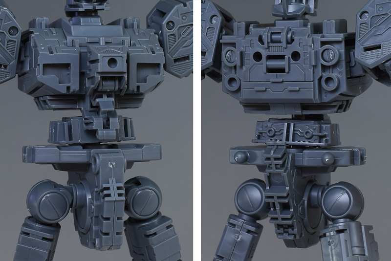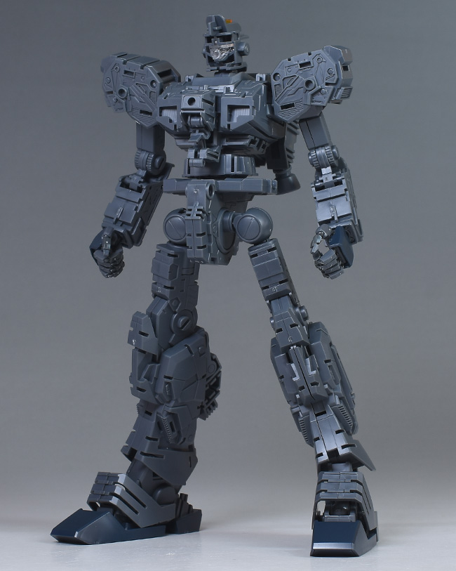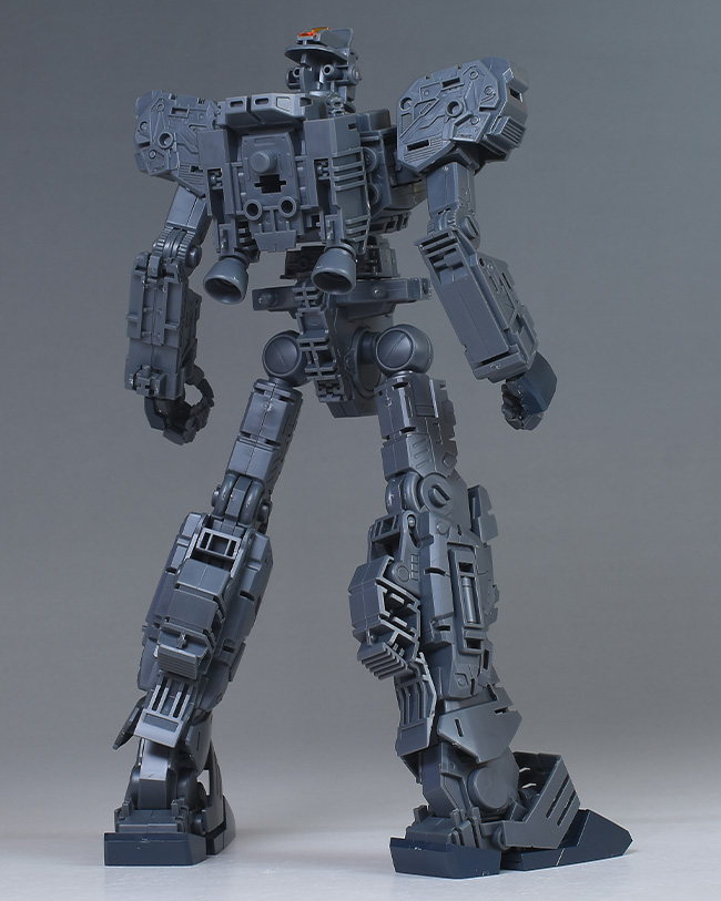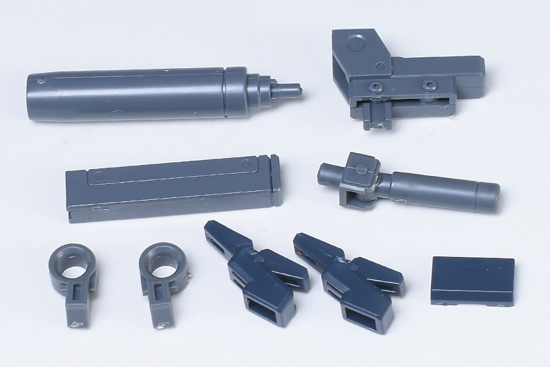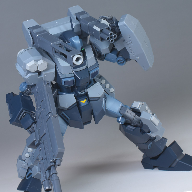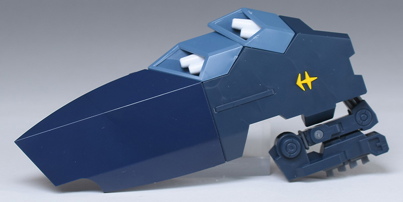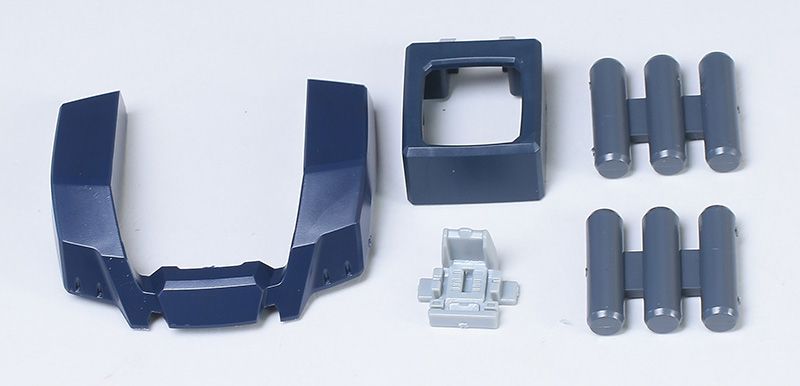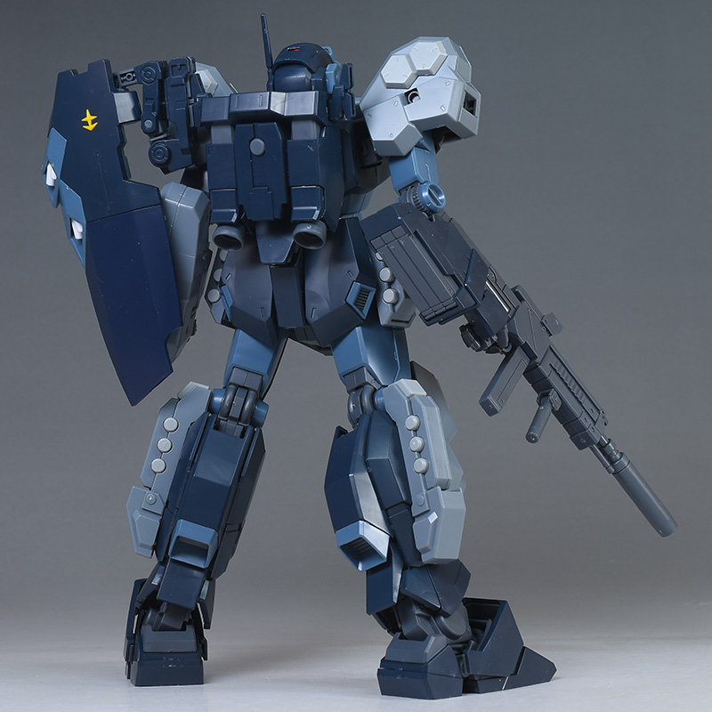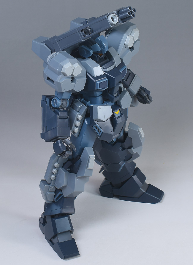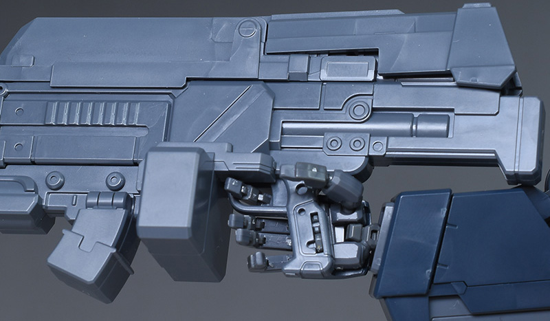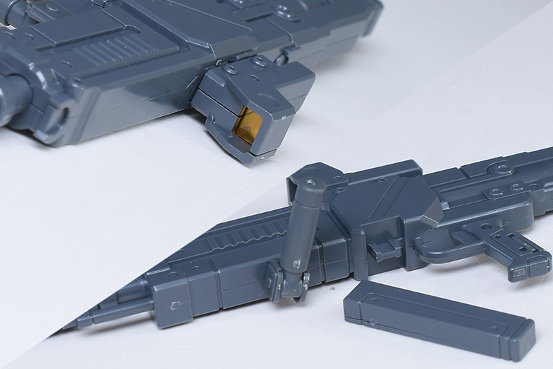 成形色はダークブルー、ライトグレー、ブルーグレーを基調としたミリタリーカラー。その他は腰部やシールドのマークがイエロー、肩部装甲やグレネード・ランチャーの弾頭などがくすみのあるホワイト、内部や関節などがグレー成型色での再現となっています。