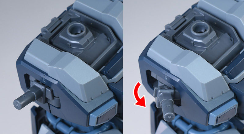 各部に増加装甲を装備していますが、各部可動域はジェスタとさほど変わりません。頭部は適度に上下します。腕は水平程度まで上げることが可能、。肘は2重関節で深くまで曲げることができます。