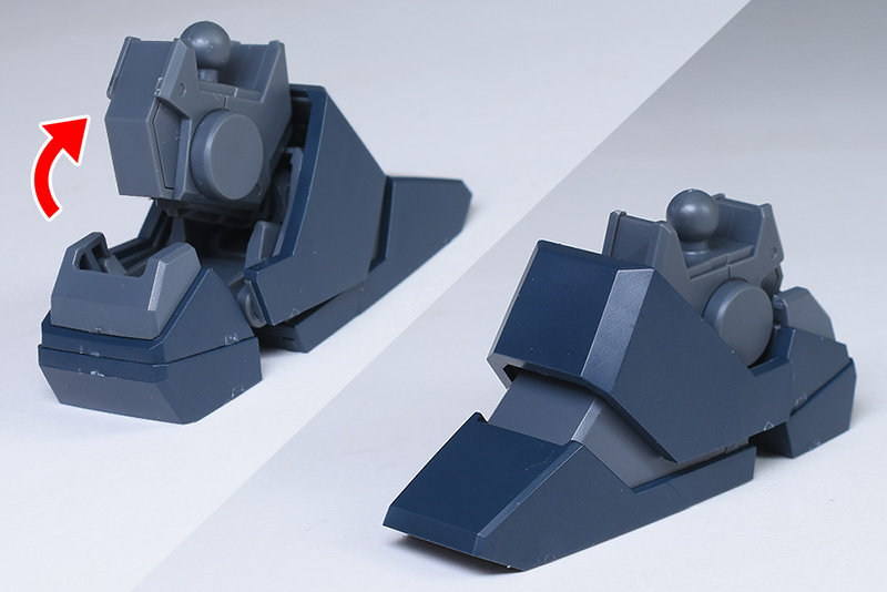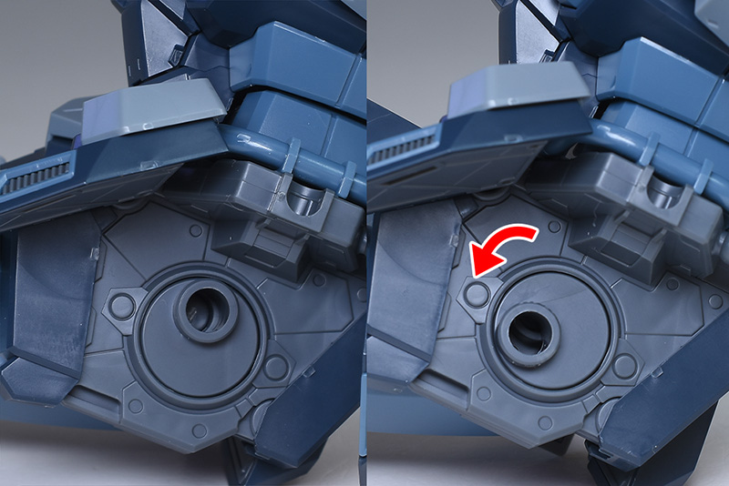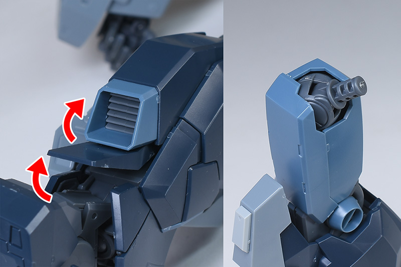 左腕はジェスタがサーベルホルダーなのに対し、ジェスタ・キャノンはボリューミーな増加装甲を装備。増加装甲は左右の簡単な組み合わせですが、中央の合わせ目は段落ちモールド化されています。特に可動ギミックもなし。