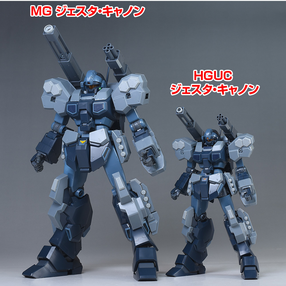 2013年4月に発売されたMG ジェスタをベースに、ジェスタ・キャノン特有の各部増加装甲、ビーム・キャノンや4連マルチ・ランチャーを持つ背部ユニット、脚部の3連グレネード・ランチャーなどが新規造形で再現されています。