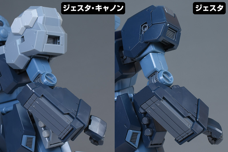 形状の異なる部分のみ、MGジェスタと比較しながらMGジェスタ・キャノンの各部を見ていきます。