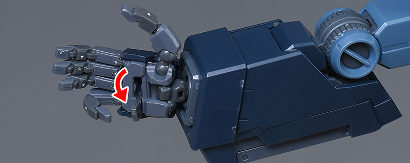 ハンドパーツは緻密な造形が楽しめるエモーションマニピュレーターSP仕様。指先細部の自由度が高く様々な表現ができてポーズが映えます。ただし指の付け根が弱く、一度外れるとポロリしやすくなるので少し注意が必要です。手のひらのリブは武器保持用に展開可能。